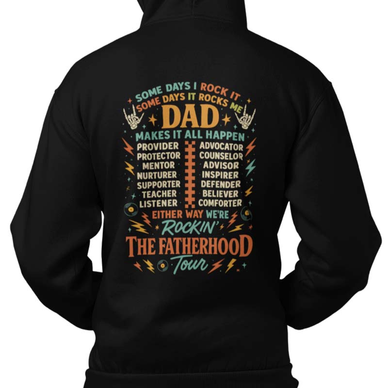 Make dad feel like a rockstar with this awesome double side printed hoodie!