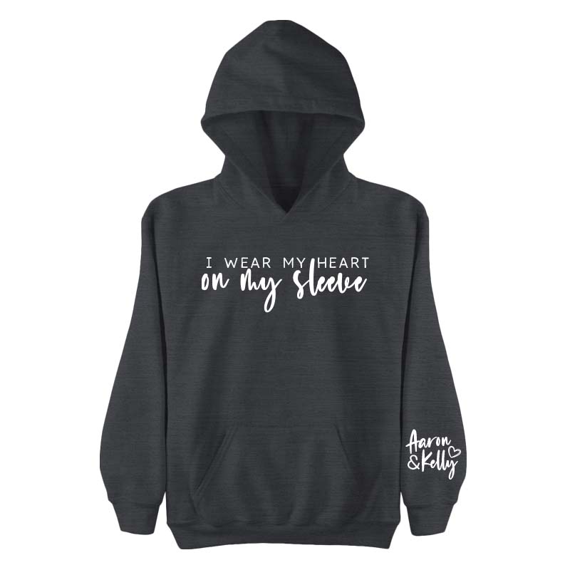 Say it without saying a word 💕 Our “Heart on My Sleeve” hoodie is the perfect blend of style, comfort, and meaning. Featuring a minimalist front design and personalised names on the sleeve, this piece turns love into something she can wear every day.